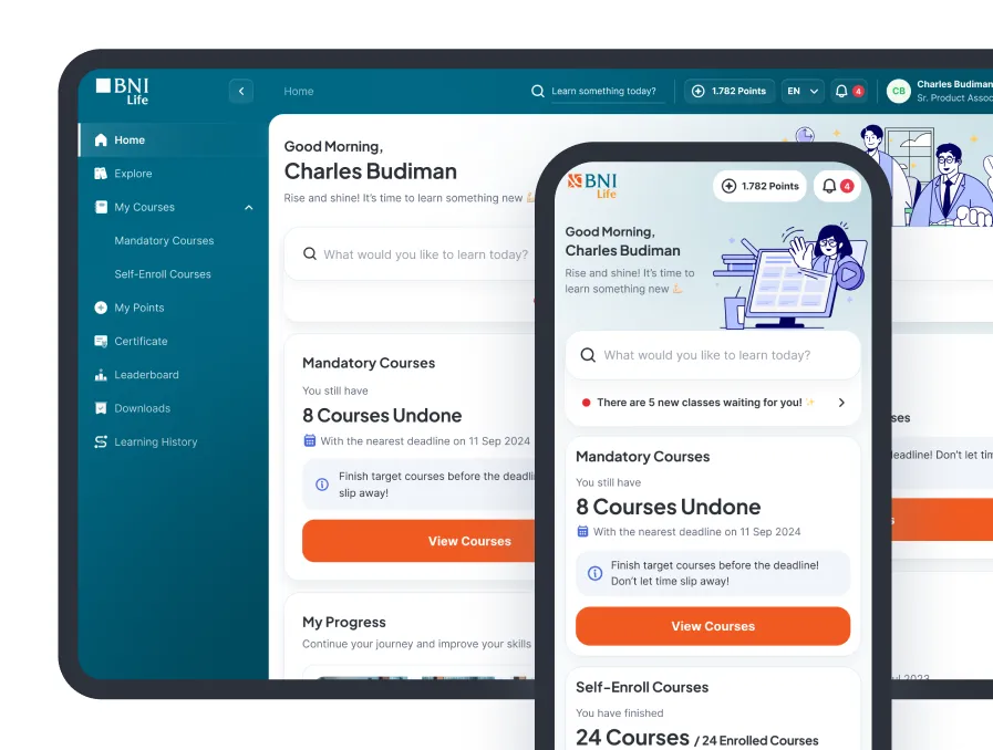 AXA Financial Indonesia learning platform whitelabeled using Ruangkerja for agents product knowledge and certification