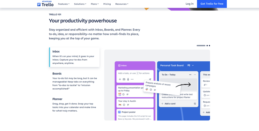 Trello bekerja dengan sistem visual yang mempermudah pengguna melihat alur proyek. Setiap proyek dibuat dalam bentuk board dan berisi beberapa list untuk menandai tahap atau kategori pekerjaan, misalnya to do, in progress, dan done.