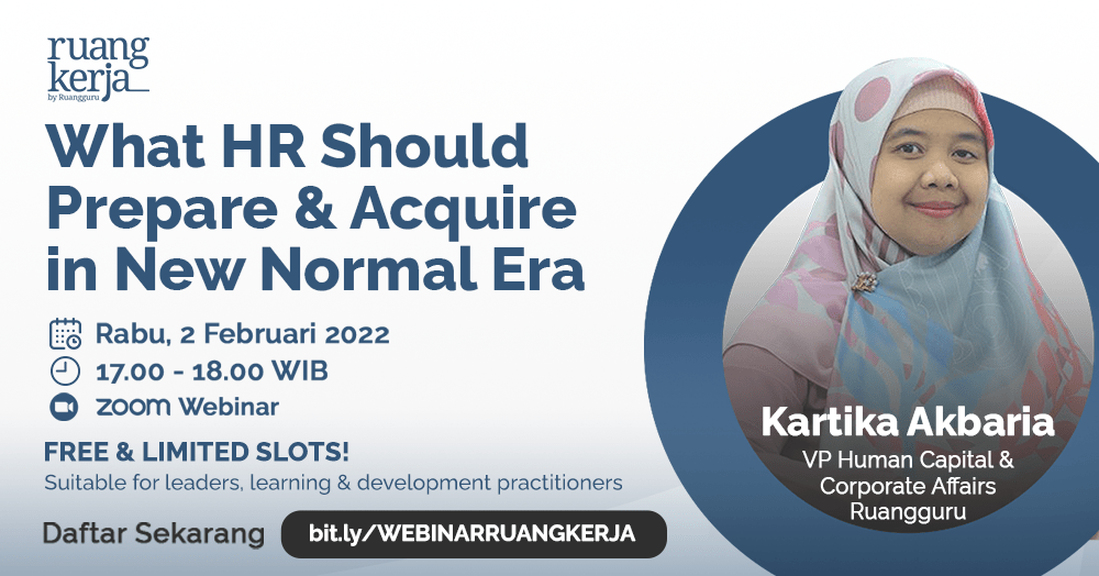 Ruangkerja memahami bahwa kini perkembangan zaman berjalan dengan sangat pesat. Bagi perusahaan, hal ini dapat menjadi tantangan apabila tidak bisa ikut berkembang dengan cepat, atau dapat pula menjadi peluang bagi mereka yang cepat berkembang. Webinar ruangkerja berkomitmen untuk menjadi salah satu saluran yang memberikan insight terkait perkembangan bisnis yang akan berguna bagi Anda dan perusahaan